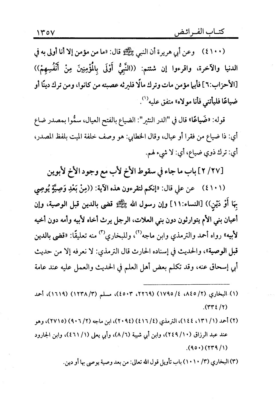 (¬3) البخاري (3/1010) باب تأويل قول الله تعالى: من بعد وصية يوصى بها أو دين.
