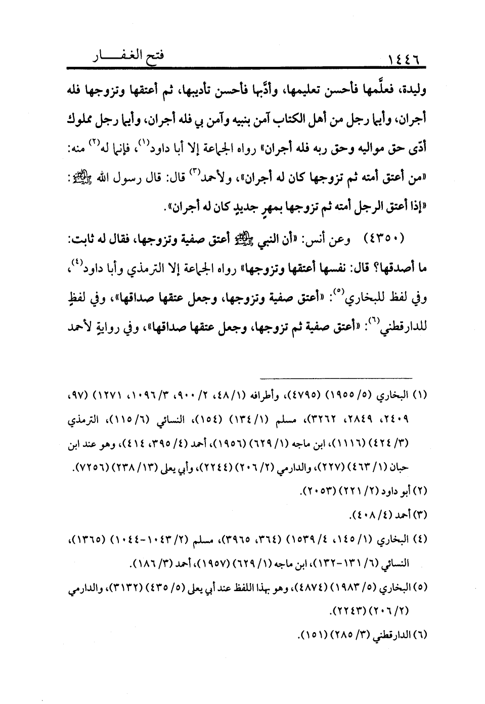 4350 - وعن أنس «أن النبي - صلى الله عليه وسلم - أعتق صفية وتزوجها، فقال له ثابت: ما أصدقها؟ قال: نفسها أعتقها وتزوجها» رواه الجماعة إلا الترمذي وأبا داود (¬4) وفي لفظ للبخاري (¬5) : «أعتق صفية وتزوجها وجعل عتقها صداقها» ، وفي لفظ للدارقطني (¬6) : «أعتق صفية ثم تزوجها وجعل عتقها صداقها» ، وفي رواية لأحمد