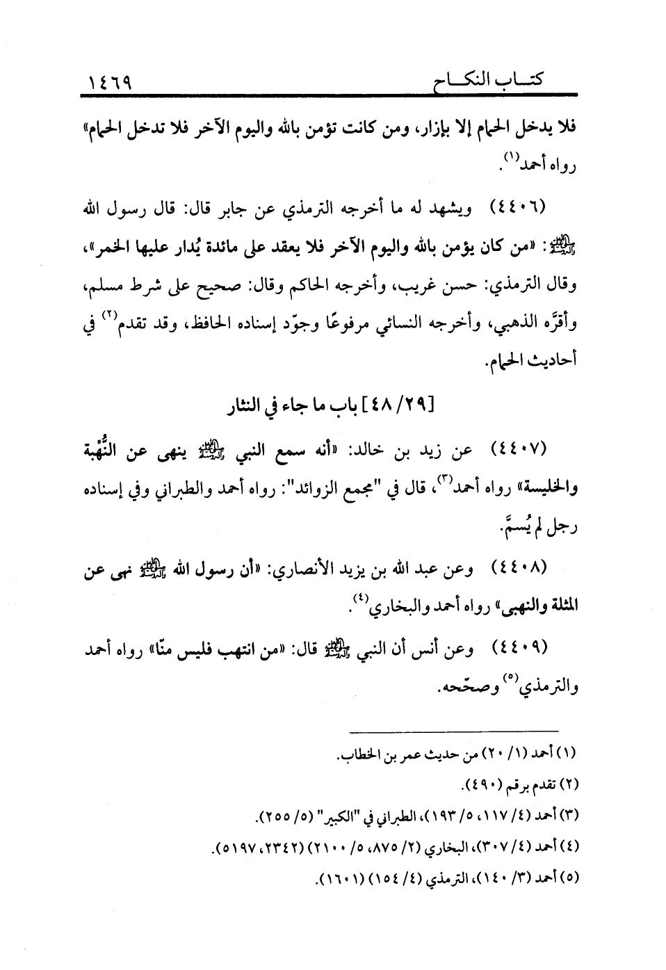 4407 - عن زيد بن خالد «أنه سمع النبي - صلى الله عليه وسلم - ينهى عن النهبة والخليسة» رواه أحمد (¬3) ، قال في "مجمع الزوائد": رواه أحمد والطبراني وفي إسناده رجل لم يسم.