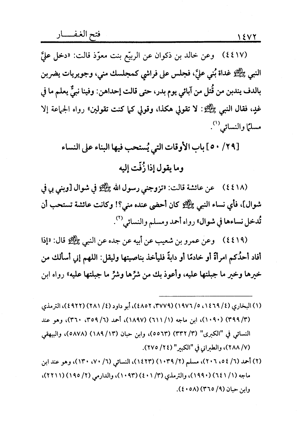 [29/50] باب الأوقات التي يستحب فيها البناء على النساء