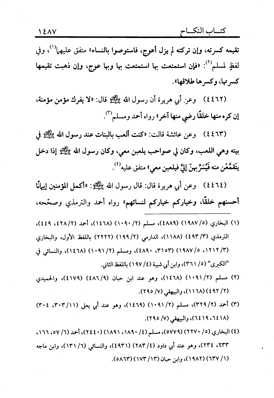 (¬4) البخاري (5/2270) (5779) ، مسلم (4/1890، 1891) (2440) ، أحمد (6/57، 166، 233، 234) ، وهو عند أبي داود (4/283) (4931) ، والنسائي (6/131) ، وابن ماجه (1/637) (1982) ، وابن حبان (13/173) (5863) .