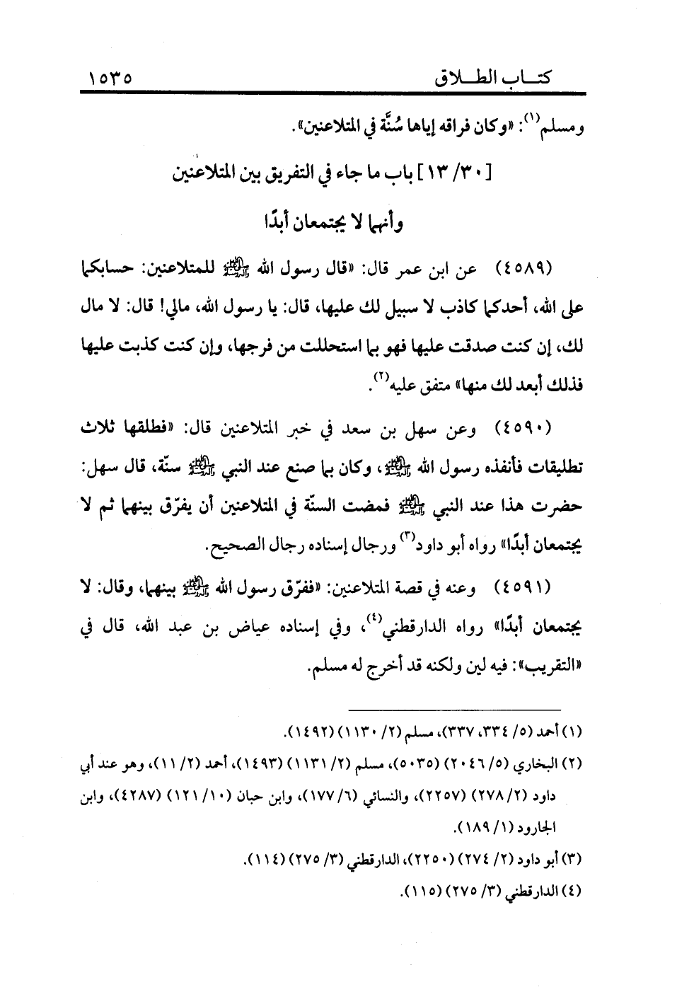 [30/13] باب ما جاء في التفريق بين المتلاعنين