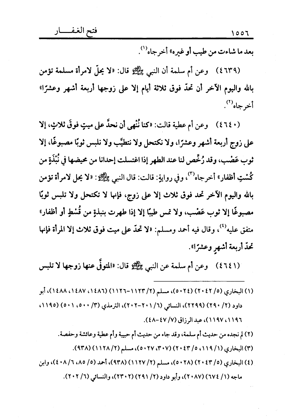(¬4) البخاري (5/2043) (5028) ، مسلم (2/1127) (938) ، أحمد (5/85، 6/408) ، وابن ماجه (1/674) (2087) ، وأبو داود (2/291) (2302) ، والنسائي (6/202) .