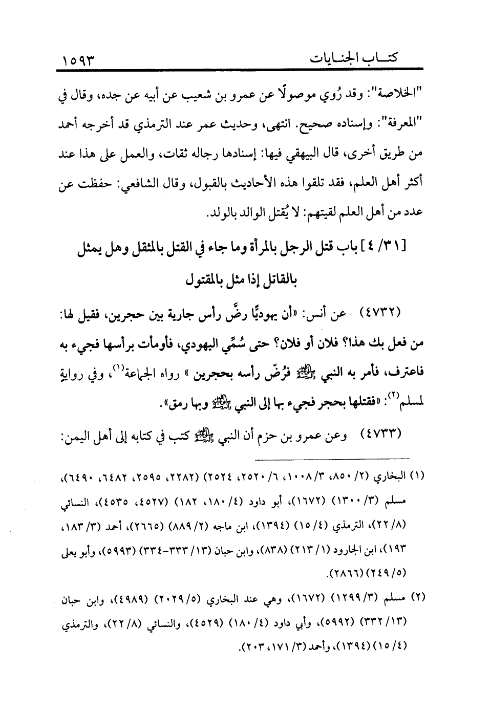 [31/4] باب قتل الرجل بالمرأة وما جاء في القتل بالمثقل وهل يمثل بالقاتل إذا مثل بالمقتول
