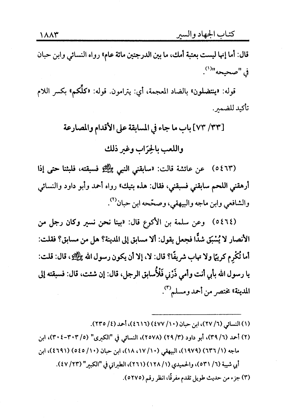 [33/73] باب ما جاء في المسابقة على الأقدام والمصارعة