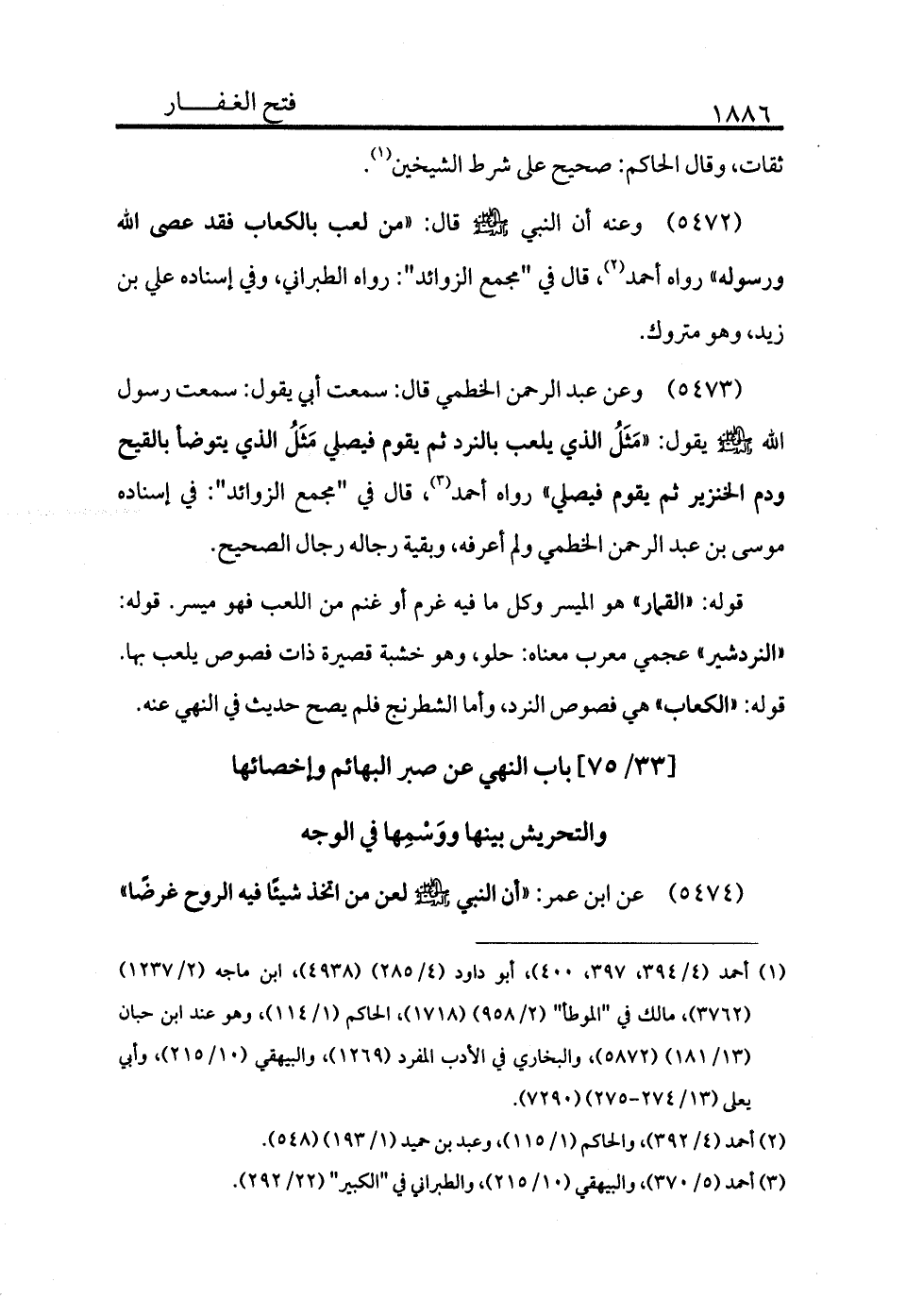 5472 - وعنه أن النبي - صلى الله عليه وسلم - قال: «من لعب بالكعاب فقد عصى الله ورسوله» رواه أحمد (¬2) ، قال في "مجمع الزوائد": رواه الطبراني، وفي إسناده علي بن زيد، وهو متروك.