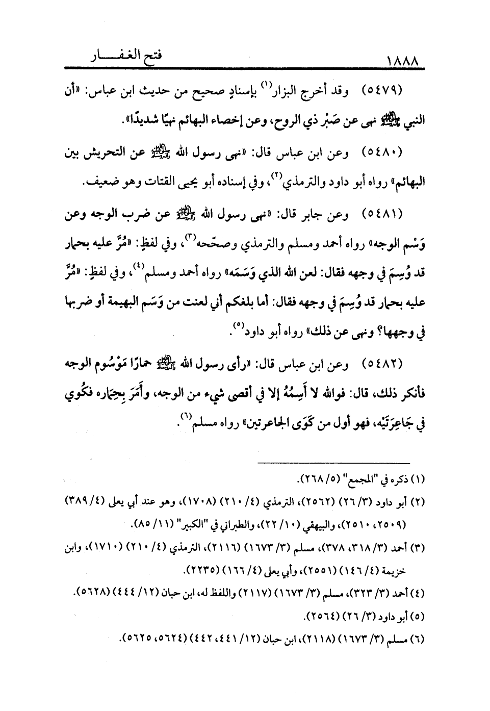 5479 - وقد أخرج البزار (¬1) بإسناد صحيح من حديث ابن عباس أن النبي - صلى الله عليه وسلم - «نهى عن صبر ذوي الروح وعن إخصاء البهائم نهيًا شديدًا» .