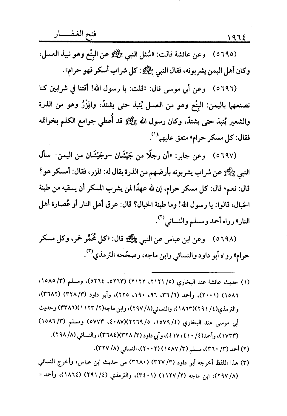 (¬3) هذا اللفظ أخرجه أبو داود (3/327) (3680) من حديث ابن عباس، وأخرج النسائي (8/297) ، ابن ماجه (2/1127) (3401) ، والترمذي (4/291) (1864) ، وأحمد = = (2/429، 501) من حديث أبي هريرة بلفظ «كل مسكر حرام» .