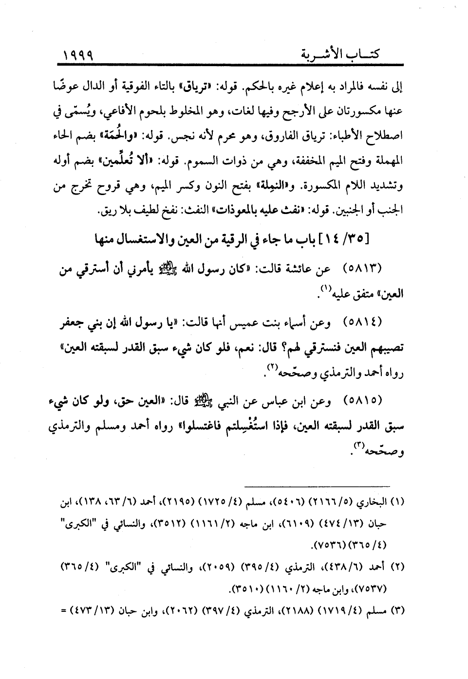 5815 - وعن ابن عباس عن النبي - صلى الله عليه وسلم - قال: «العين حق، ولو كان شيء سبق القدر لسبقته العين، فإذا استغسلتم فاغتسلوا» رواه أحمد ومسلم والترمذي وصححه (¬3) .