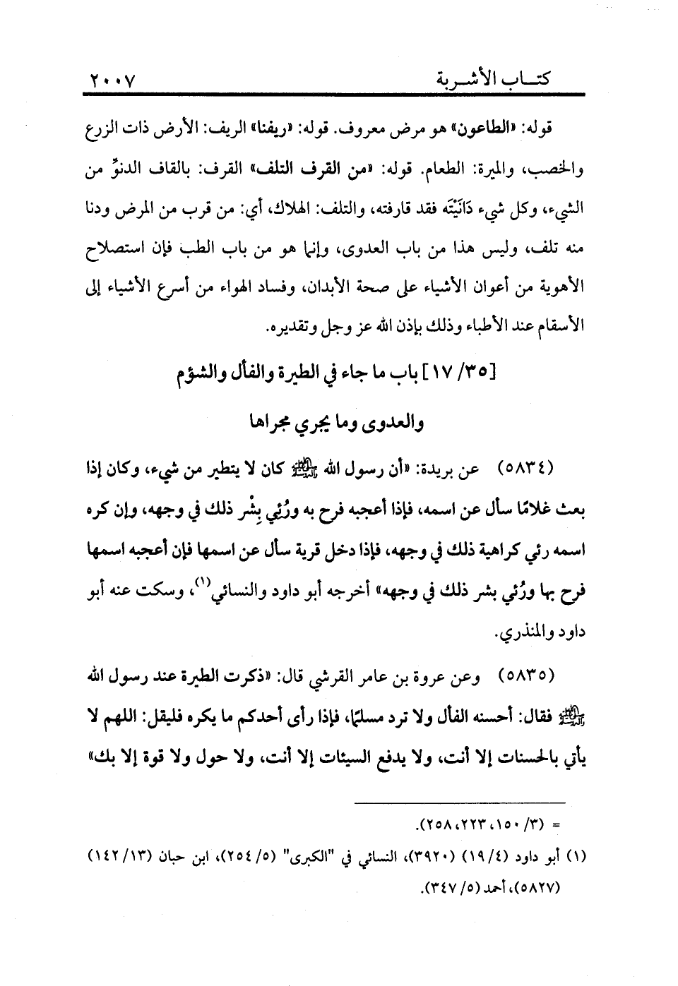 5835 - وعن عروة بن عامر القرشي، قال: «ذكرت الطيرة عند رسول الله - صلى الله عليه وسلم - فقال: أحسنه الفال ولا ترد مسلمًا فإذا رأى أحدكم ما يكره فليقل: اللهم لا يأتي بالحسنات إلا أنت ولا يدفع السيئات إلا أنت، ولا حول ولا قوة إلا بك»