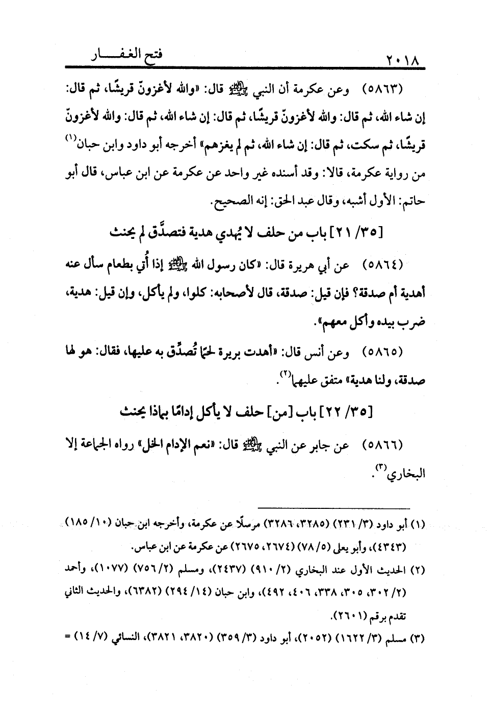 5864 - عن أبي هريرة قال: «كان رسول الله - صلى الله عليه وسلم - إذا أُتي بطعام سأل عنه أهدية أم صدقة؟ فإن قيل صدقة، قال لأصحابه: كلوه ولم يأكل، وأن قيل هدية ضرب بيده وأكل معهم» .
