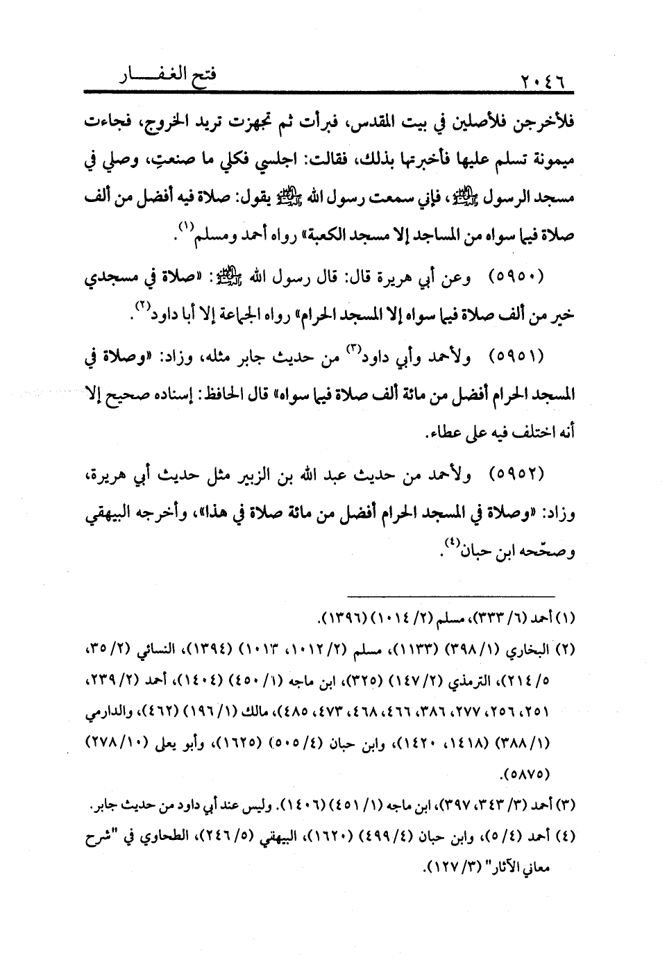 5951 - ولأحمد وأبي داود (¬3) من حديث جابر مثله وزاد: «وصلاة في المسجد الحرام أفضل من مائة ألف صلاة فيما سواه» قال الحافظ: إسناده صحيح إلا أنه اختلف فيه على عطاء.