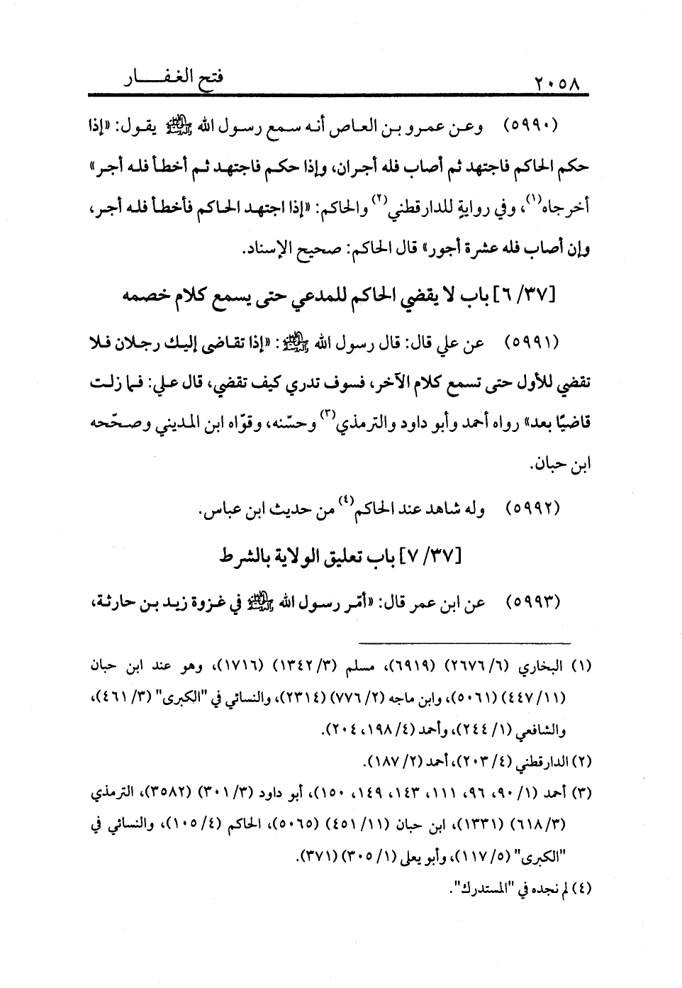 [37/6] باب لا يقضي الحاكم للمدعي حتى يسمع كلام خصمه