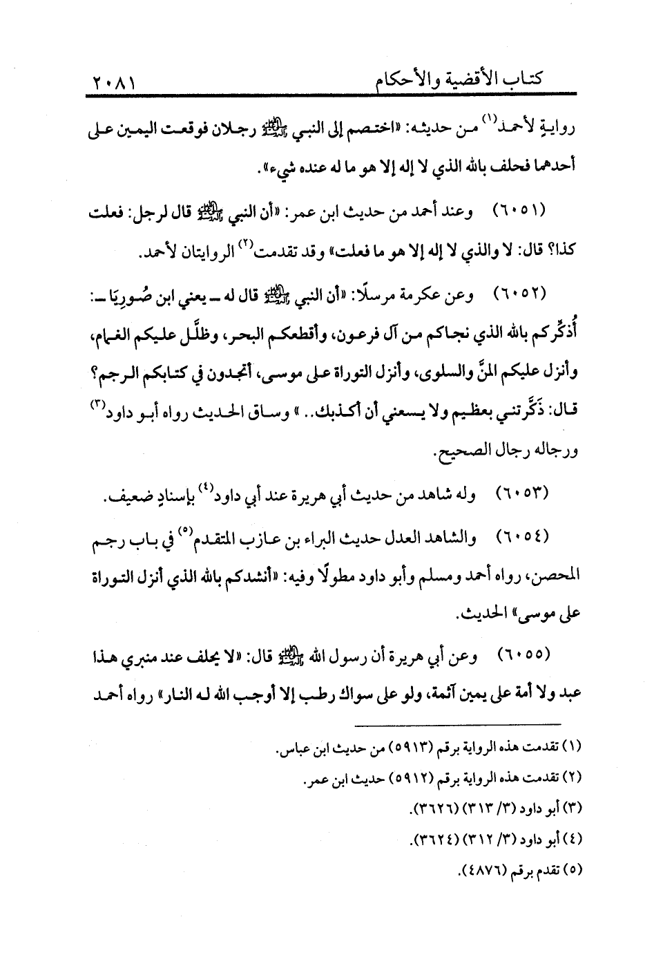 6054 - والشاهد العدل حديث البراء بن عازب المتقدم (¬5) في باب رجم المحصن، رواه أحمد ومسلم وأبو داود مطولًا وفيه: «أنشدكم بالله الذي أنزل التوراة على موسى» الحديث.