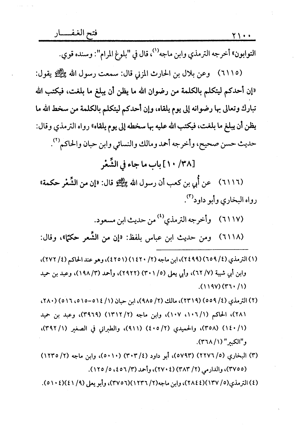 6116 - عن أُبي بن كعب أن رسول الله - صلى الله عليه وسلم - قال: «إن من الشعر حكمة» رواه البخاري وأبو داود (¬3) .