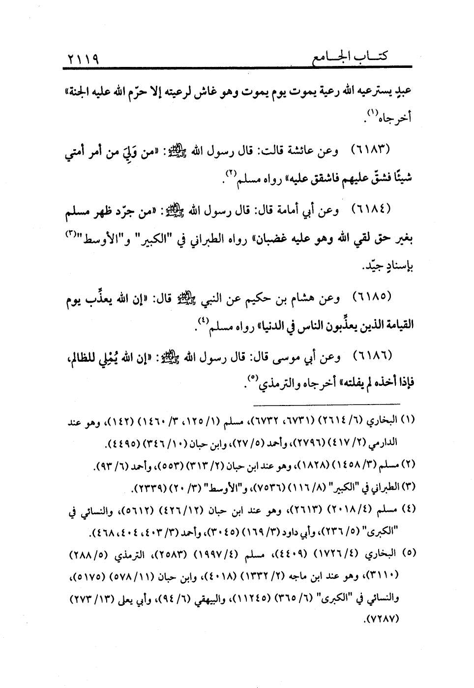 6185 - وعن هشام بن حكيم عن النبي - صلى الله عليه وسلم -: «إن الله يعذب يوم القيامة الذين يعذبون الناس في الدنيا» رواه مسلم (¬4) .