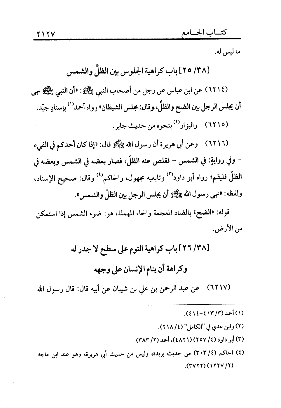[38/25] باب كراهية الجلوس بين الظل والشمس