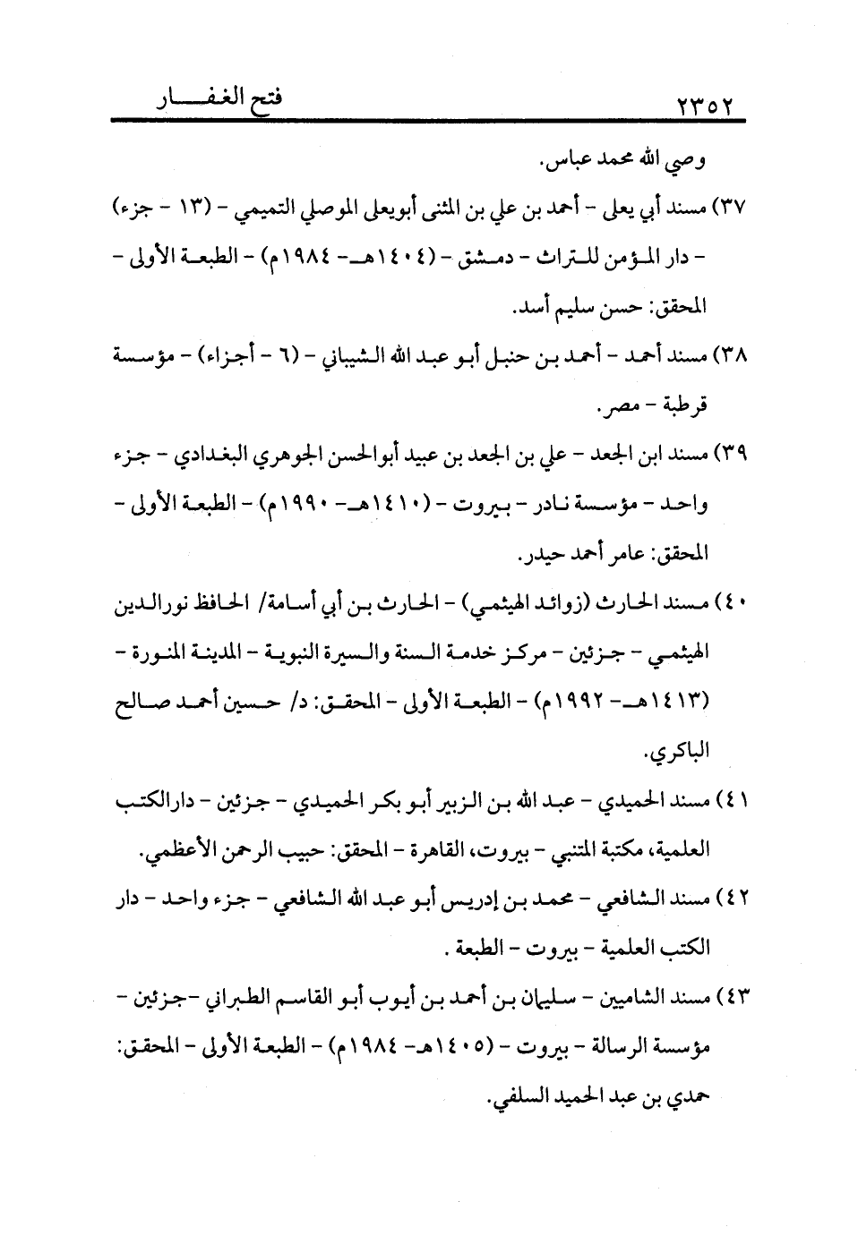 42) مسند الشافعي - محمد بن إدريس أبو عبد الله الشافعي - جزء واحد - دار الكتب العلمية - بيروت - الطبعة.