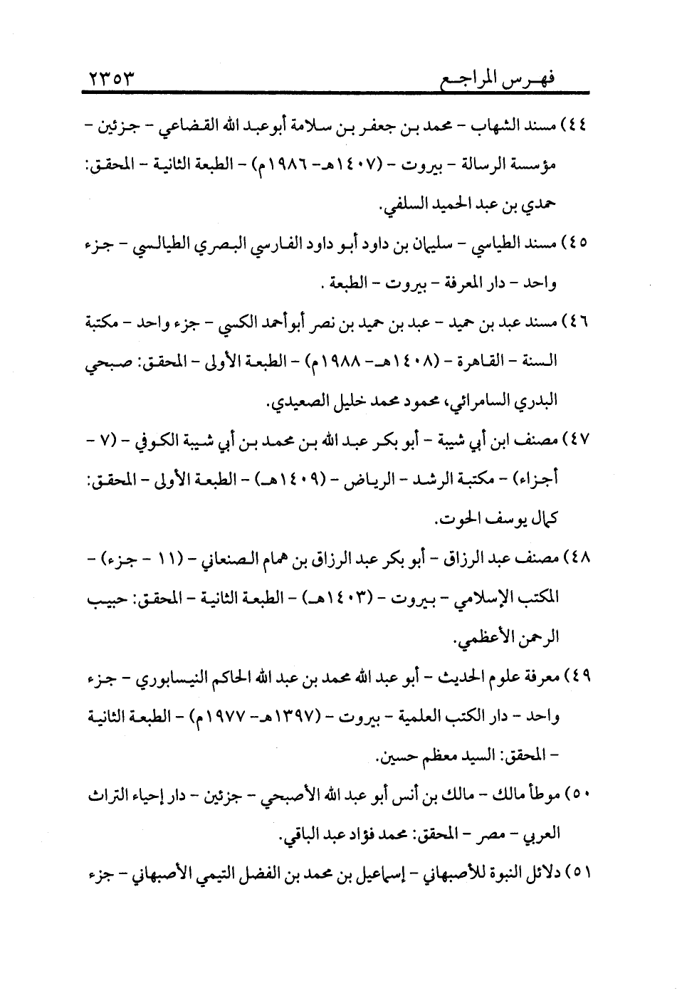 45) مسند الطياسي - سليمان بن داود أبو داود الفارسي البصري الطيالسي - جزء واحد - دار المعرفة - بيروت - الطبعة.