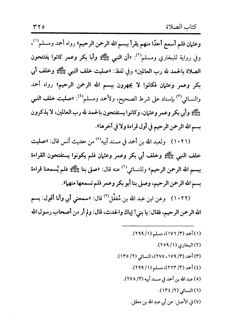 1022 - وعن ابن (¬7) عبد الله بن مُغفَّل قال: «سمعني أبي وأنا أقول: بسم الله الرحمن الرحيم، فقال: يا بني! إياك والحدث، قال: ولم أر من أصحاب رسول الله