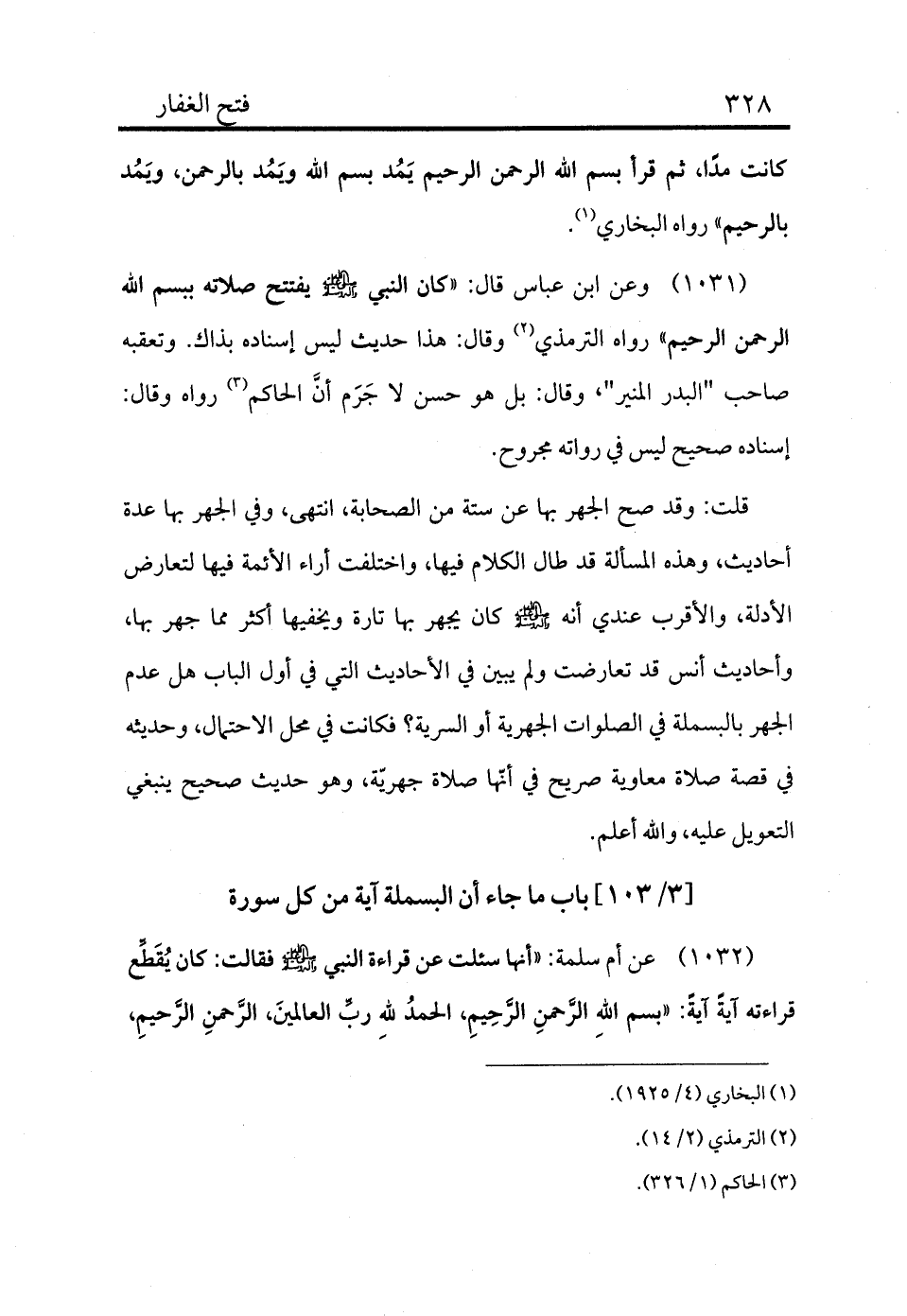 (¬3) الحاكم (1/326) .