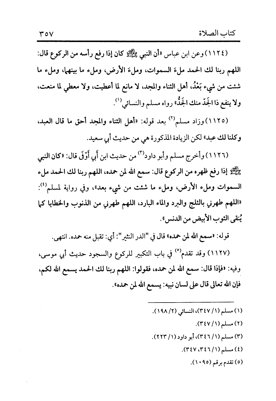 1126 - وأخرج مسلم وأبو داود (¬3) من حديث ابن أَبي أَوْفَى قال: «كان النبي - صلى الله عليه وسلم - إذا رفع ظهره من الركوع قال: سمع الله لمن حمده، اللهم ربنا لك الحمد ملء السموات وملء الأرض، وملء ما شئت من شيء بعد» ، وفي رواية لمسلم (¬4) : «اللهم طهرني بالثلج والبرد والماء البارد، اللهم طهرني من الذنوب والخطايا كما ينقى الثوب الأبيض من الدنس» .