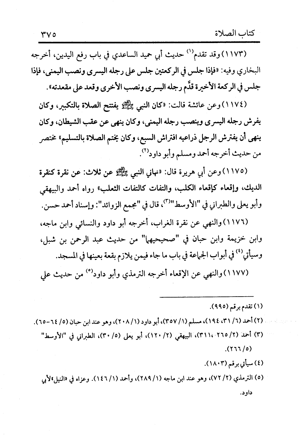 1177 - والنهي عن الإقعاء أخرجه الترمذي وأبو داود (¬5) من حديث علي