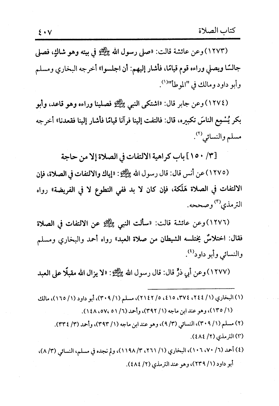 [3/150] باب كراهية الالتفات في الصلاة إلا من حاجة