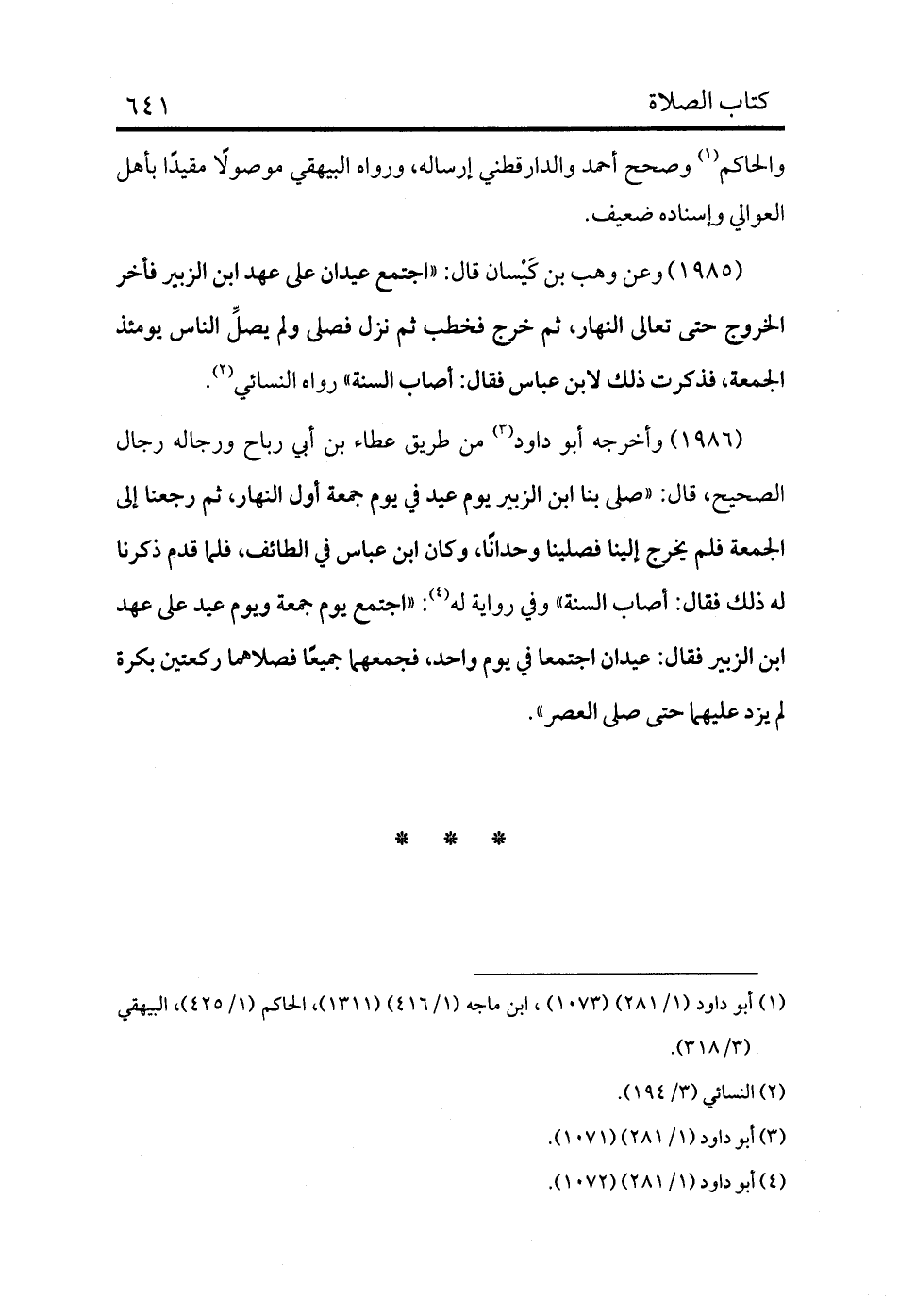 (¬1) أبو داود (1/281) (1073) ، ابن ماجه (1/416) (1311) ، الحاكم (1/425) ، البيهقي (3/318) .