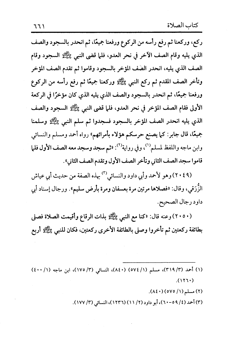 2050 - وعنه قال: «كنا مع النبي - صلى الله عليه وسلم - بذات الرقاع وأقيمت الصلاة فصلى بطائفة ركعتين ثم تأخروا وصلى بالطائفة الأخرى ركعتين، فكان للنبي - صلى الله عليه وسلم - أربع