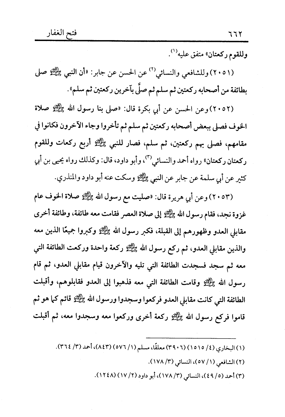 2051 - وللشافعي والنسائي (¬2) عن الحسن عن جابر: «أن النبي - صلى الله عليه وسلم - صلى بطائفة من أصحابه ركعتين ثم سلم ثم صلَّى بآخرين ركعتين ثم سلم» .