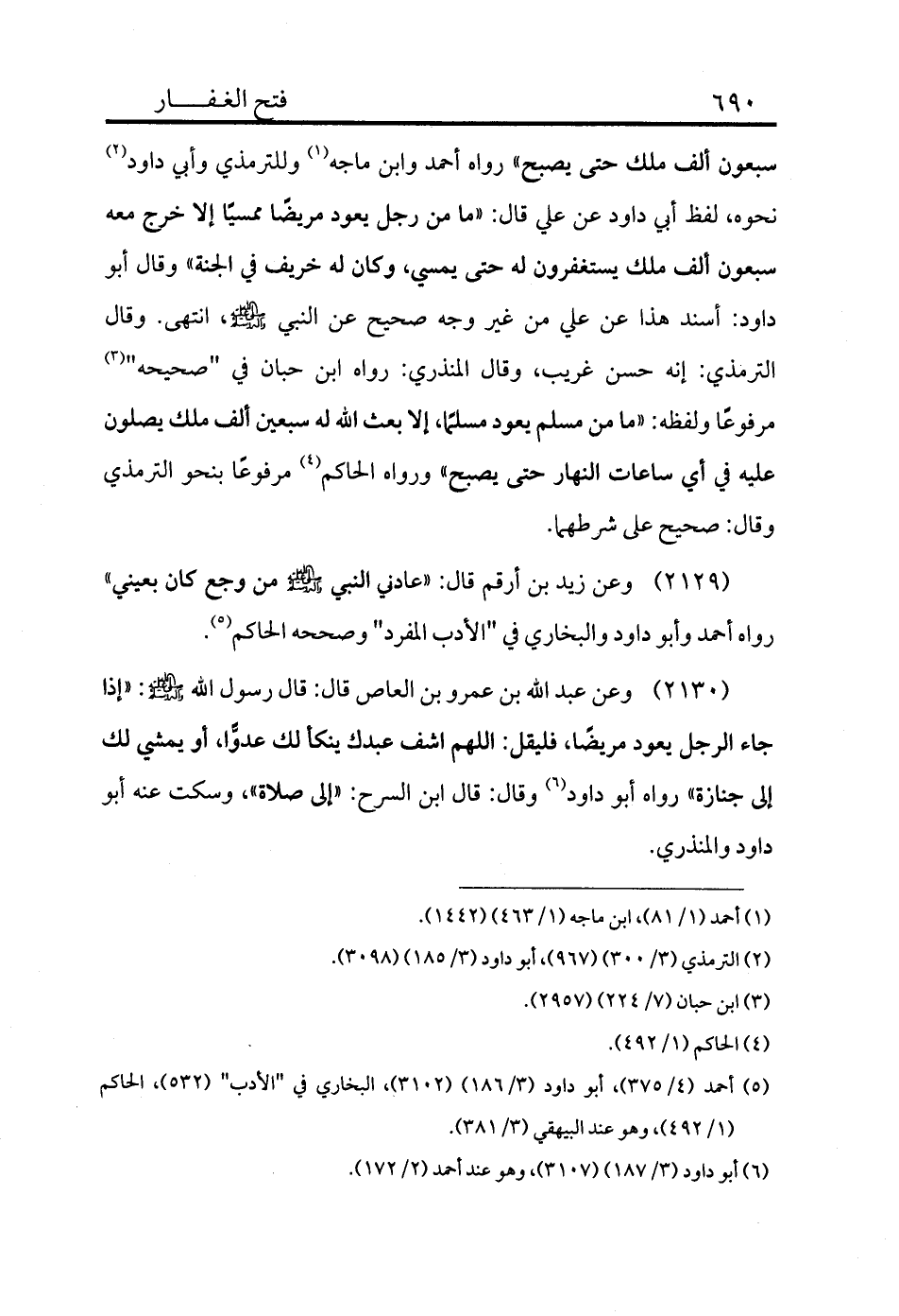 2129 - وعن زيد بن أرقم قال: «عادني النبي - صلى الله عليه وسلم - من وجع كان بعيني» رواه أحمد وأبو داود والبخاري في "الأدب المفرد" وصححه الحاكم (¬5) .