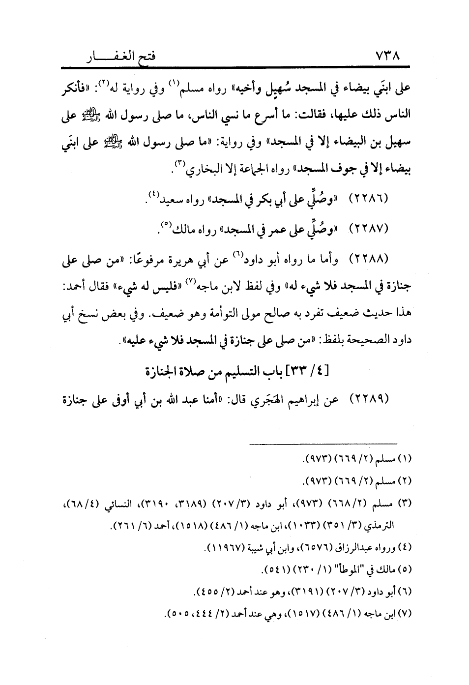 (¬3) مسلم (2/668) (973) ، أبو داود (3/207) (3189، 3190) ، النسائي (4/68) ، الترمذي (3/351) (1033) ، ابن ماجه (1/486) (1518) ، أحمد (6/261) .
