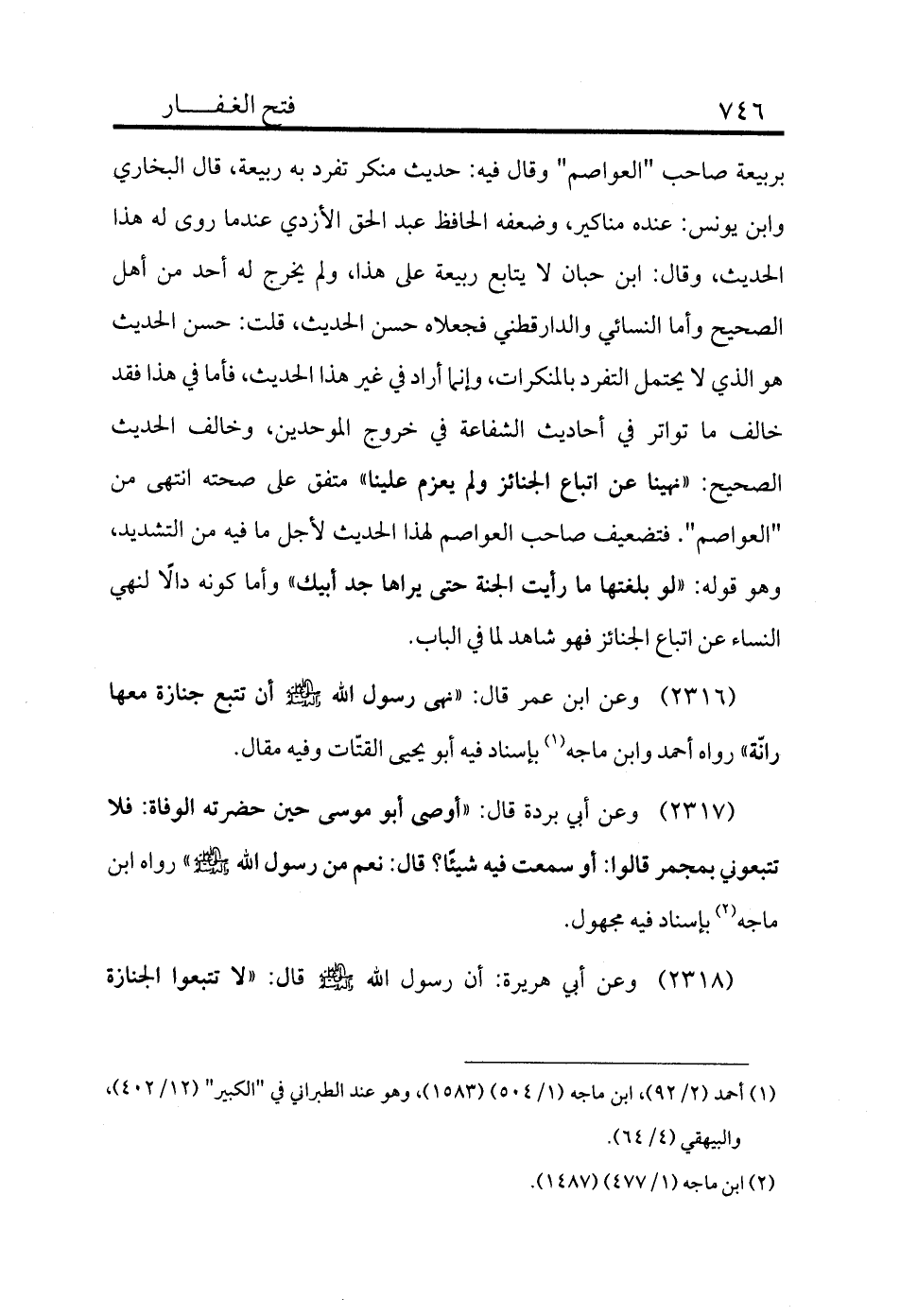بربيعة صاحب "العواصم" وقال فيه: حديث منكر تفرد به ربيعة، قال البخاري وأبن يونس: عنده مناكير، وضعفه الحافظ عبد الحق الأزدي عندما روى له هذا الحديث، وقال: ابن حبان لا يتابع ربيعة على هذا، ولم يخرج له أحد من أهل الصحيح وأما النسائي والدارقطني فجعلاه حسن الحديث، قلت: حسن الحديث هو الذي لا يحتمل التفرد بالمنكرات، وإنما أراد في غير هذا الحديث، فأما في هذا فقد خالف ما تواتر في أحاديث الشفاعة في خروج الموحدين، وخالف الحديث الصحيح: «نهينا عن اتباع الجنائز ولم يعزم علينا» متفق على صحته انتهى. من "العواصم" فتضعيف صاحب العواصم. لهذا الحديث لأجل ما فيه من التشديد، وهو قوله: «لو بلغتها ما رأيت الجنة حتى يراها جد أبيك» وأما كونه دالًا لنهي النساء عن اتباع الجنائز فهو شاهد لما في الباب.