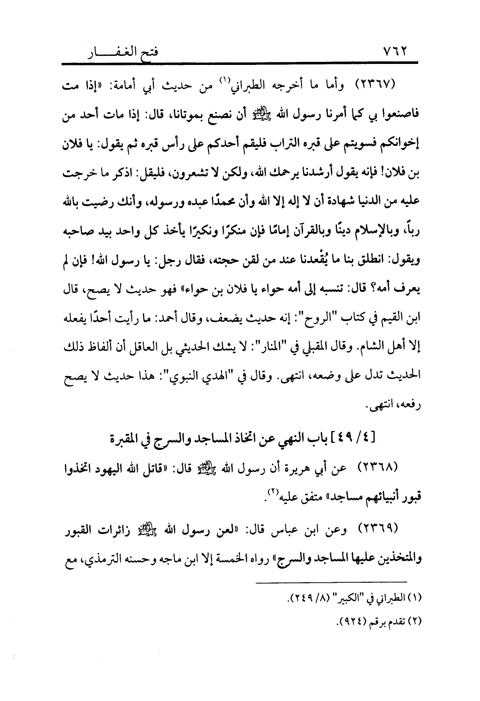 [4/49] باب النهي عن اتخاذ المساجد والسرج في المقبرة