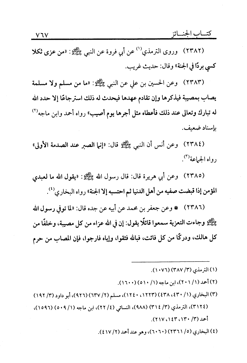 (¬3) البخاري (1/430، 438) (1223، 1240) ، مسلم (2/637) (926) ، أبو داود (3/192) (3124) ، الترمذي (3/314) (988) ، النسائي (4/22) ، ابن ماجه (1/509) (1596) ، أحمد (3/130، 143، 217) .