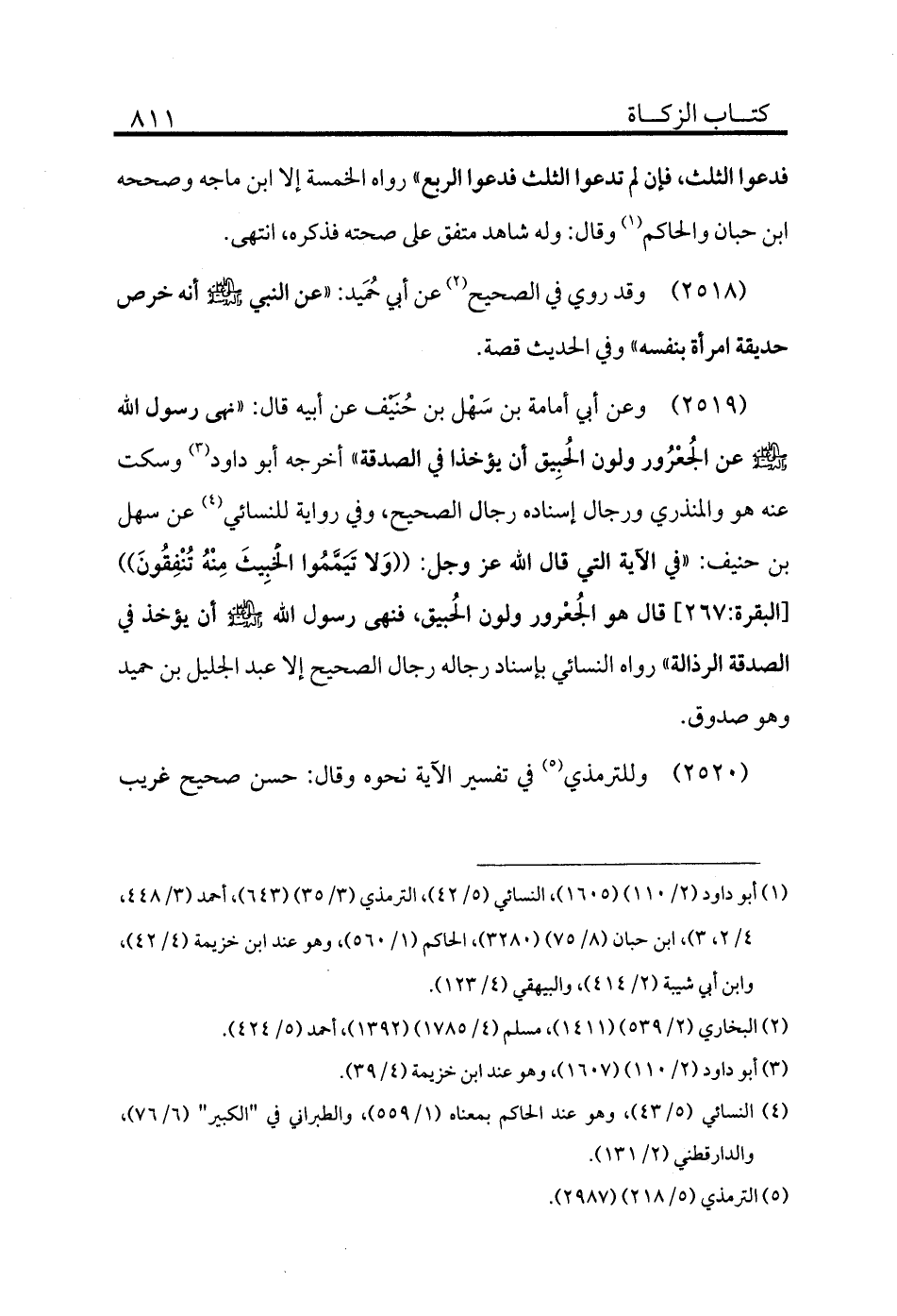 (¬1) أبو داود (2/110) (1605) ، النسائي (5/42) ، الترمذي (3/35) (643) ، أحمد (3/448، 4/2، 3) ، ابن حبان (8/75) (3280) ، الحاكم (1/560) ، وهو عند ابن خزيمة (4/42) ، وابن أبي شيبة (2/414) ، والبيهقي (4/123) .