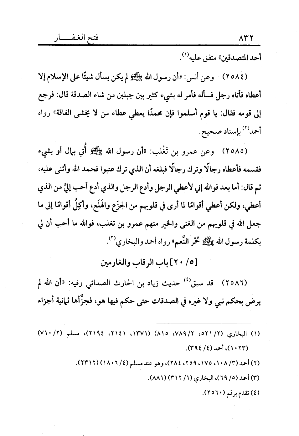 2586 - قد سبق (¬4) حديث زياد بن الحارث الصدائي وفيه: «أن الله لم يرض بحكم نبي ولا غيره في الصدقات حتى حكم فيها هو، فجزَّأها ثمانية أجزاء