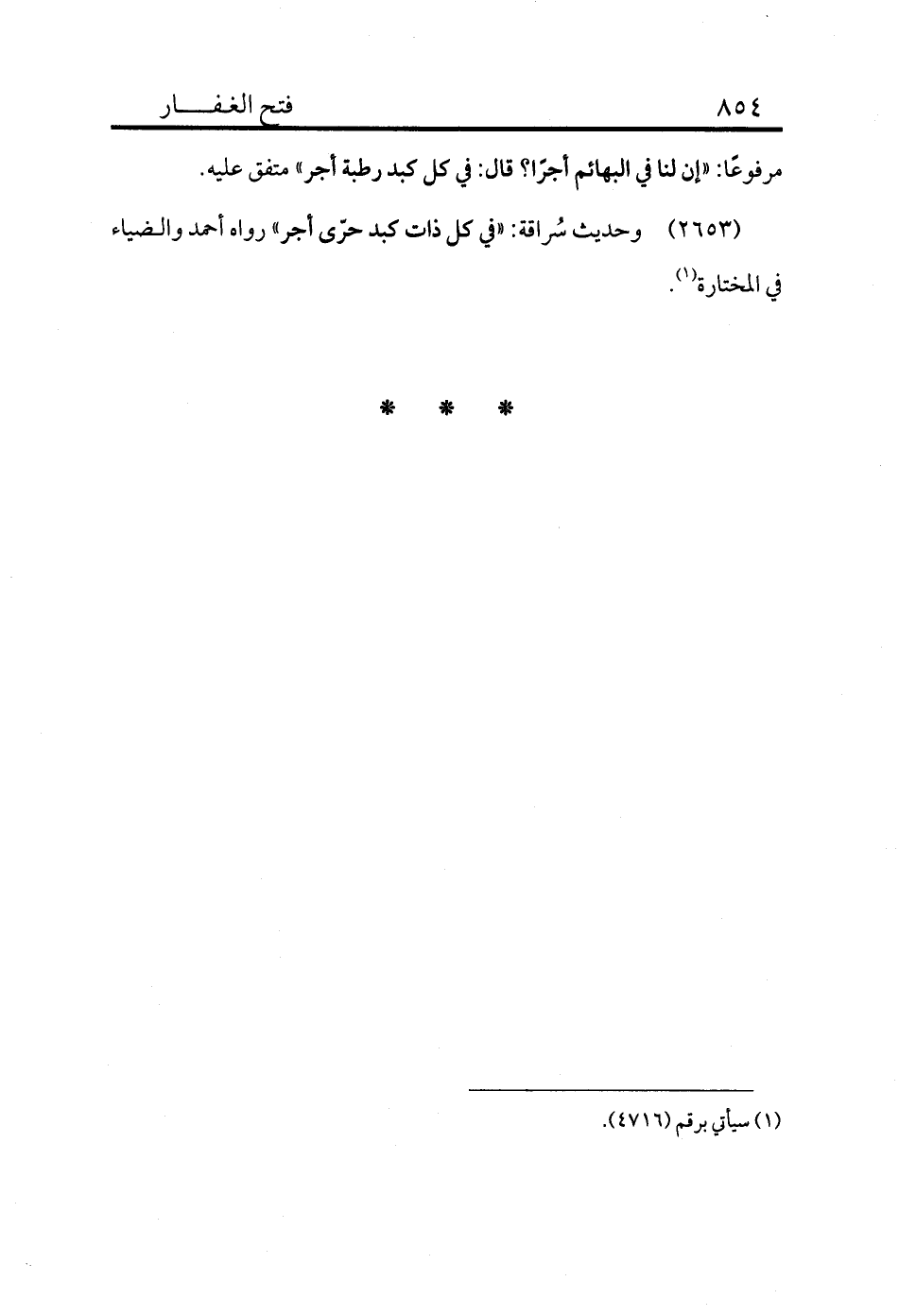 2653 - وحديث سُراقة: «في ذات كل كبد حرّى أجر» رواه أحمد والضياء في المختارة (¬1) .