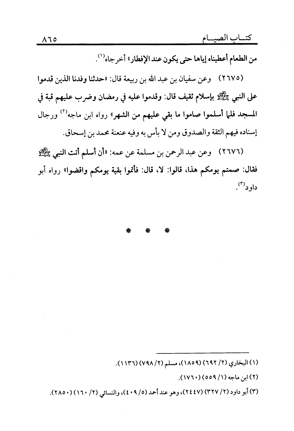 2676 - وعن عبد الرحمن بن مسلمة عن عمه: «أن أسلم أتت النبي - صلى الله عليه وسلم - فقال: صمتم يومكم هذا، قالوا: لا، قال: فأتموا بقية يومكم واقضوا» رواه أبو داود (¬3) .
