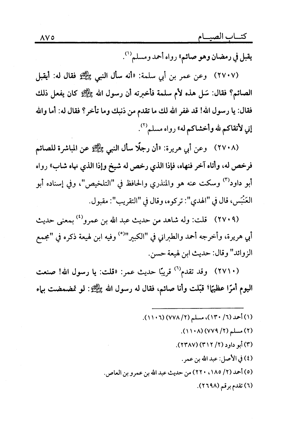 2710 - وقد تقدم (¬6) قريبًا حديث عمر: «قلت: يا رسول الله! صنعت اليوم أمرًا عظيمًا قبّلت وأنا صائم، فقال له رسول الله - صلى الله عليه وسلم -: لو تمضمضت بماء