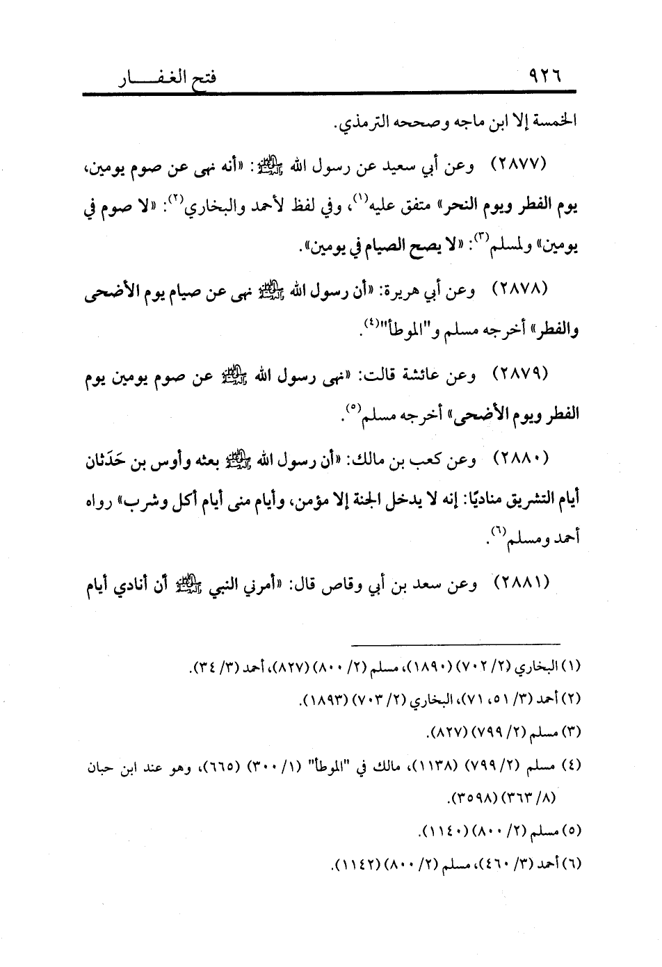 2878 - وعن أبي هريرة: «أن رسول الله - صلى الله عليه وسلم - نهى عن صيام يوم الأضحى والفطر» أخرجه مسلم و"الموطأ" (¬4) .
