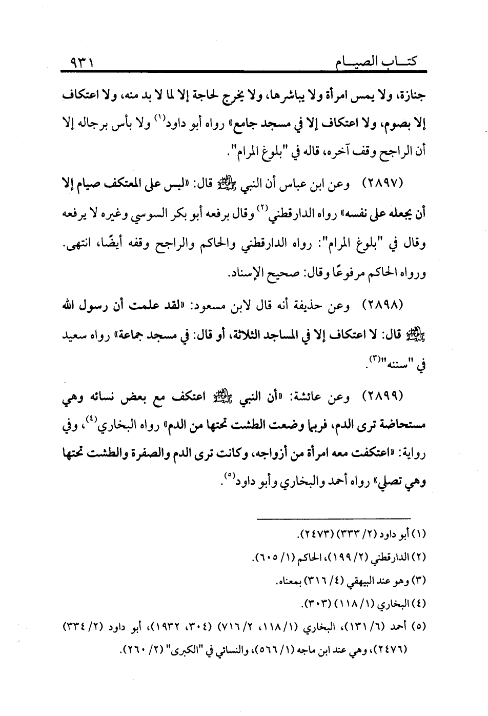 2899 - وعن عائشة: «أن النبي - صلى الله عليه وسلم - اعتكف مع بعض نسائه وهي مستحاضة ترى الدم، فربما وضعت الطشت تحتها من الدم» رواه البخاري (¬4) ، وفي رواية: «اعتكفت معه امرأة من أزواجه، وكانت ترى الدم والصفرة والطشت تحتها وهي تصلي» رواه أحمد والبخاري وأبو داود (¬5) .