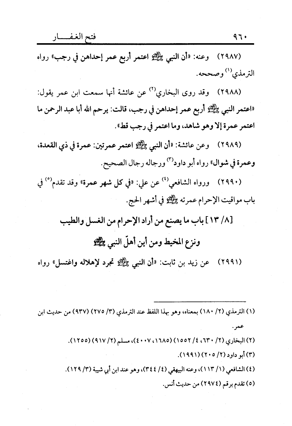 2987 - وعنه: «أن النبي - صلى الله عليه وسلم - اعتمر أربع عمر إحداهن في رجب» رواه الترمذي (¬1) وصححه.