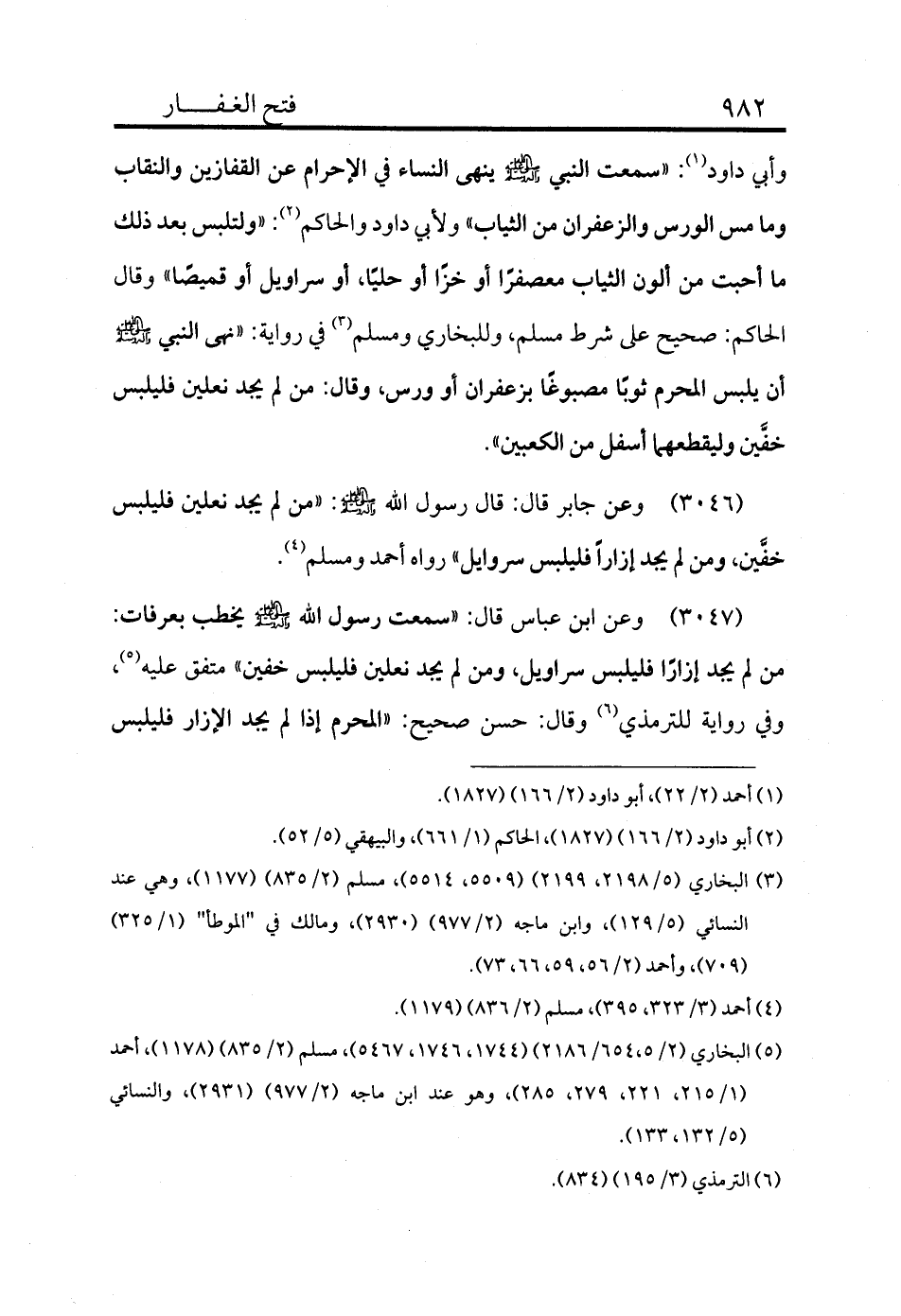 3046 - وعن جابر قال: قال رسول الله - صلى الله عليه وسلم -: «من لم يجد نعلين فليلبس خفَّين، ومن لم يجد إزاراً فليلبس سروايل» رواه أحمد ومسلم (¬4) .