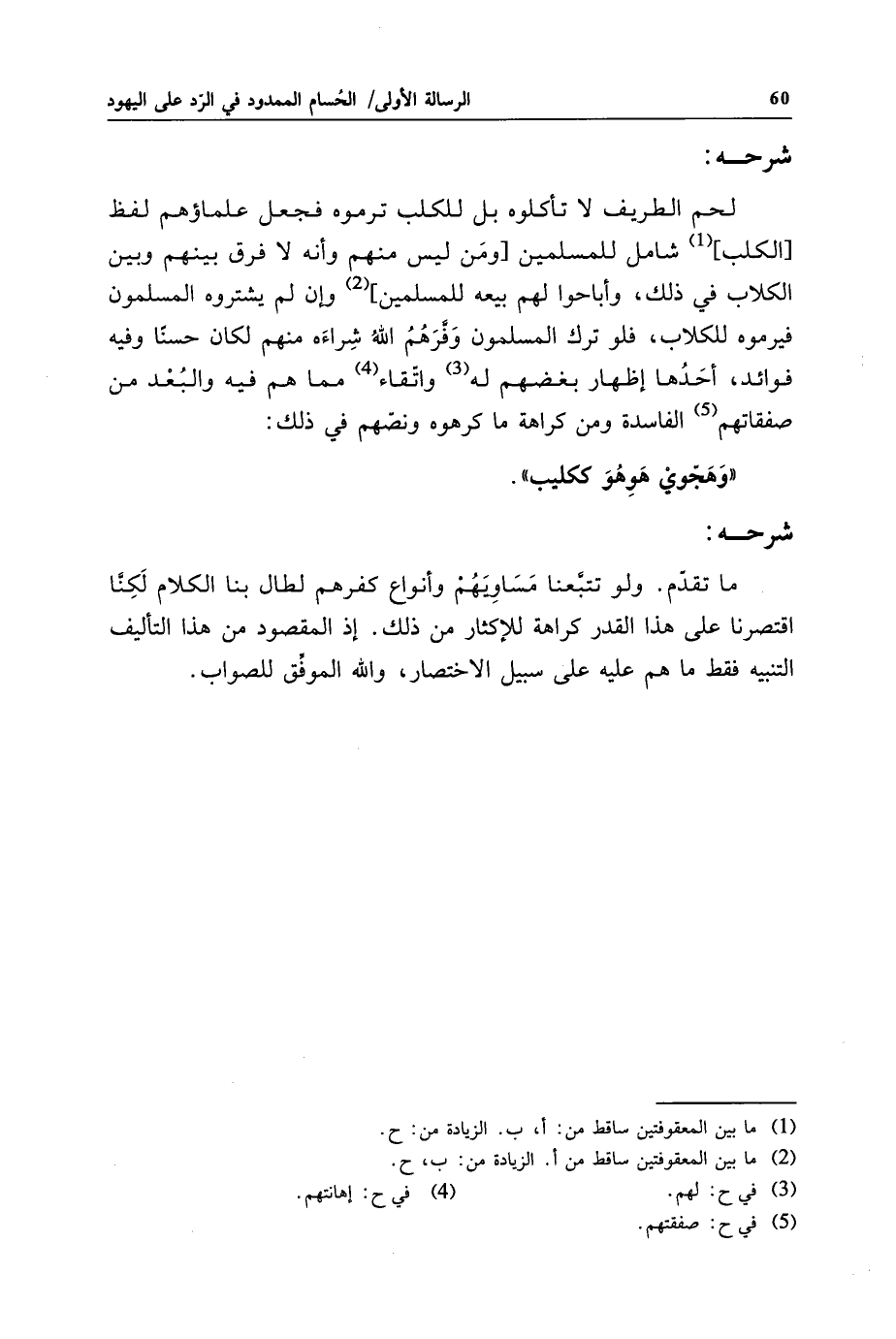 فجعل علماؤهم لفظ "الكلب" شامل للمسلمين ومن ليس منهم وأنه لا فرق بينهم وبين الكلاب في ذلك. وأباحوا لهم بيعه للمسلمين، وإن لم يشتروه المسلمون فيرموه للكلاب. فلو ترك المسلمون وفرهم الله شراءه منهم لكان حسنا. وفيه فوائد، أحدها إظهار بغضهم له واتقاء مما هم فيه والبعد من صفقاتهم الفاسدة ومن كراهة ما كرهوه. ونصهم في ذلك: