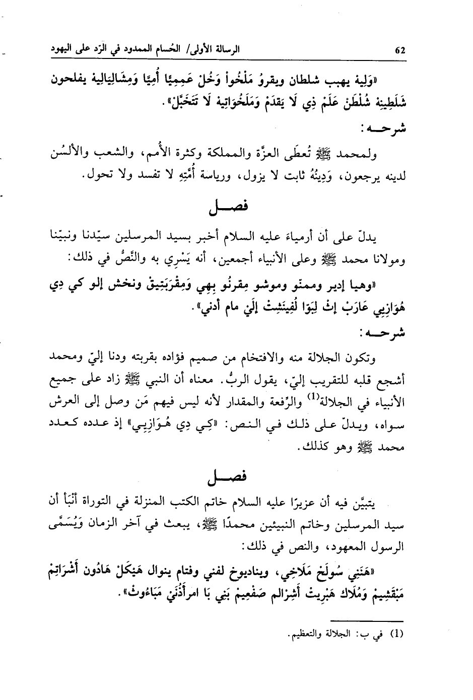 يتبين فيه أن عزيرا عليه السلام خاتم الكتب المنزلة في التوراة أنبأ أن سيد المرسلين وخاتم النبيئين محمدا - صلى الله عليه وسلم - يبعث في آخر الزمان ويسمى الرسول المعهود. والنص في ذلك: