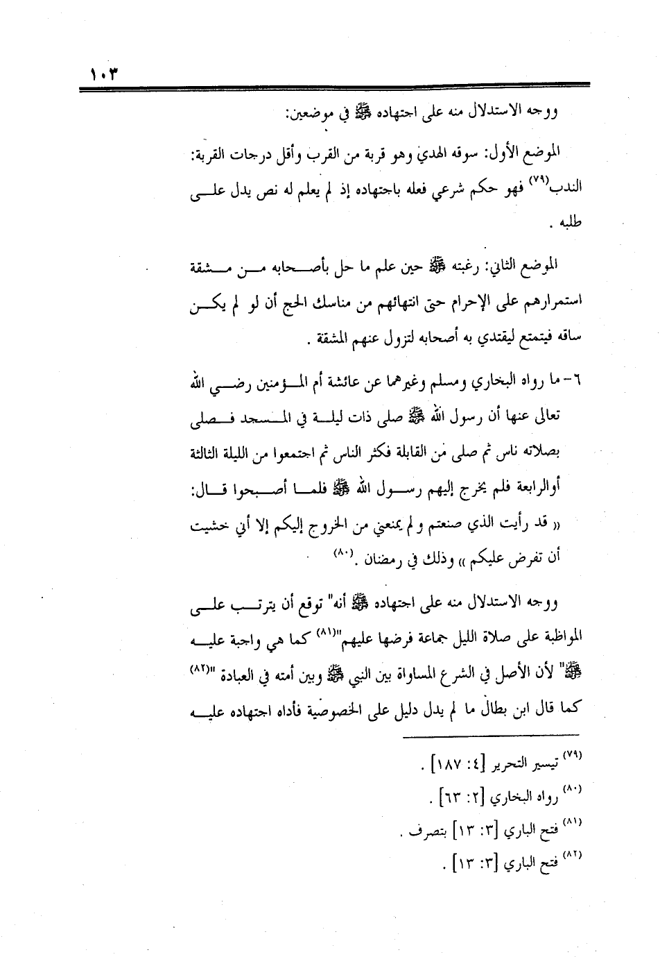 ووجه الاستدلال منه على اجتهاده - صلى الله عليه وسلم - أنه " توقع أن يترتب على المواظبة على صلاة الليل جماعة فرضها عليهم " كما هي واجبة عليه - صلى الله عليه وسلم - " لأن الأصل في الشرع المساواة بين النبي - صلى الله عليه وسلم - وبين أمته في العبادة " كما قال ابن بطال ما لم يدل دليل على الخصوصية فأداه اجتهاده عليه