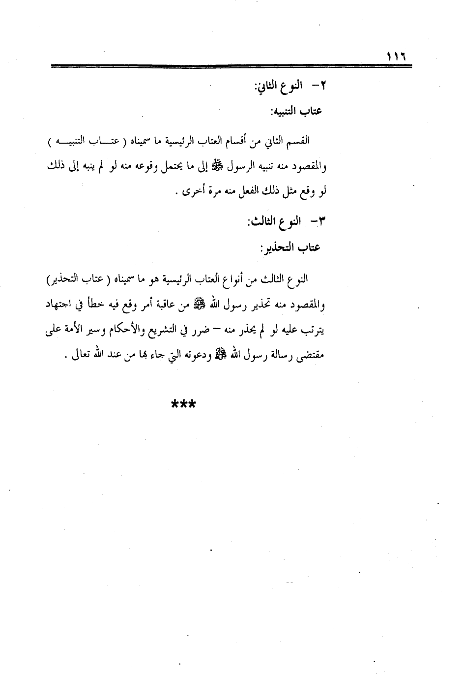 القسم الثاني من أقسام العتاب الرئيسية ما سميناه (عتاب التنبيه) والمقصود منه تنبيه الرسول - صلى الله عليه وسلم - إلى ما يحتمل وقوعه منه لو لم ينبه إلى ذلك لوقع مثل ذلك الفعل منه مرة أخرى.