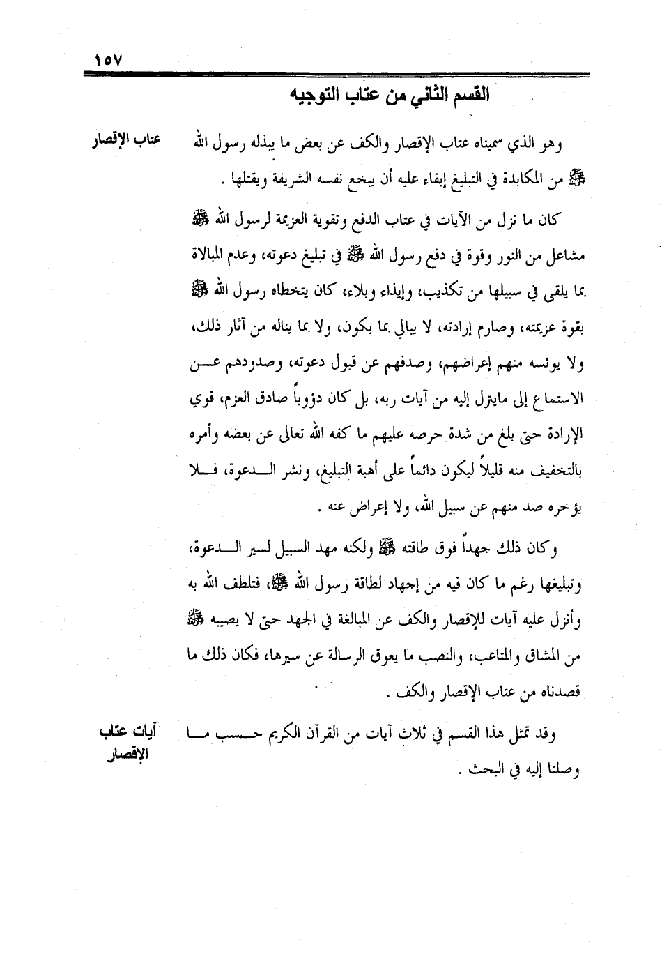 وكان ذلك جهداً فوق طاقته - صلى الله عليه وسلم - ولكنه مهد السبيل لسير الدعوة، وتبليغها رغم ما كان فيه من إجهاد لطاقة رسول الله - صلى الله عليه وسلم -، فتلطف الله به وأنزل عليه آيات للإقصار والكف عن المبالغة في الجهد حتى لا يصيبه - صلى الله عليه وسلم - من المشاق والمتاعب، والنصب ما يعوق الرسالة عن سيرها، فكان ذلك ما قصدناه من عتاب الإقصار والكف.